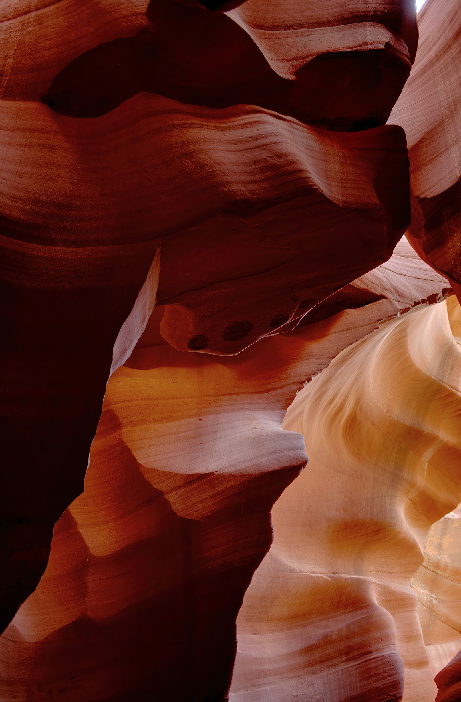 I prefer the second one, but I like it cropped and flipped because it brings out the beautiful fluid lines, and it's even less obvious what it is.