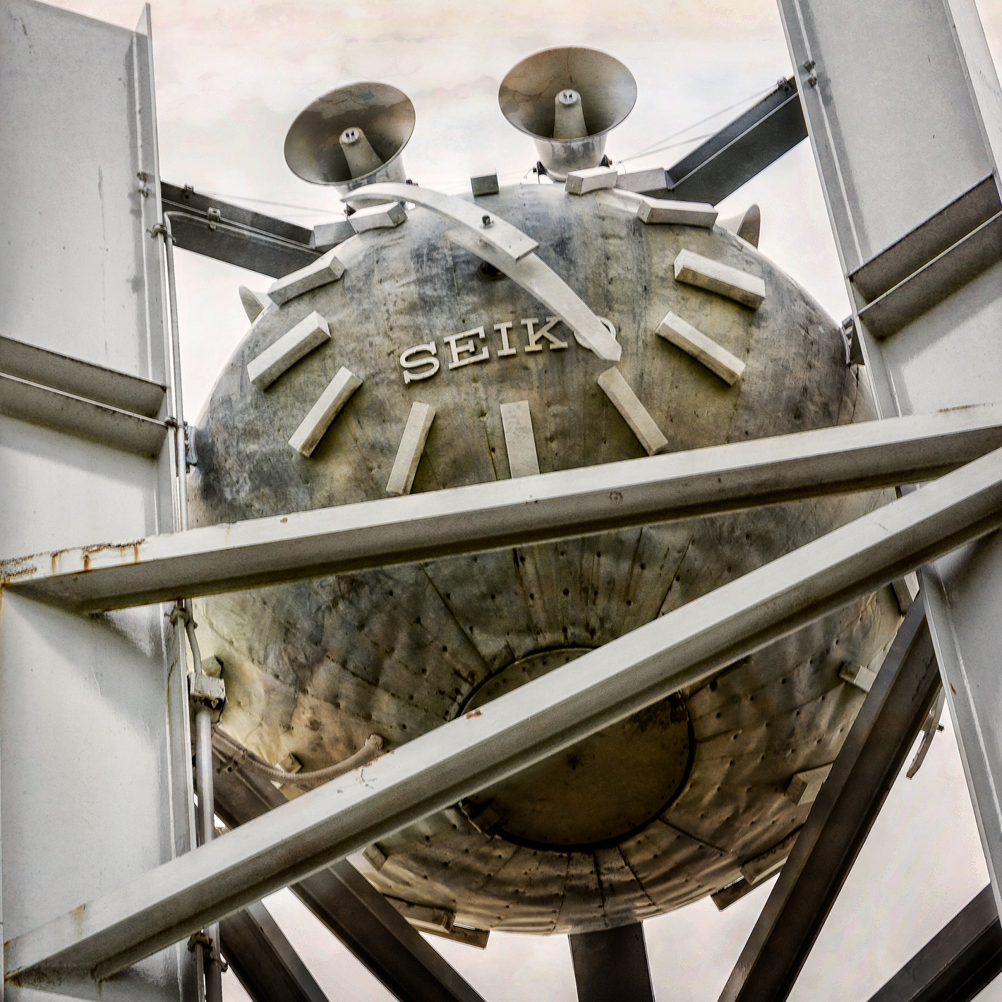 You might consider using a different, or no, texture on the steel girders than the one used for the sky. I think allowing the texture to cover both background and foreground gives the image a more prominent "applied texture" effect and also reduces depth.