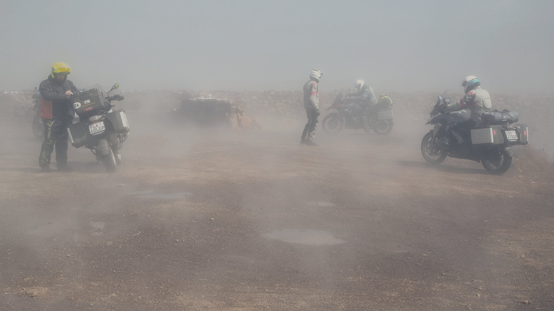 Just cropped this image and smaller and converted to jpg from RAW. I'm not very familiar with misty and snow conditions, very seldom here in sunny South Africa. Just saw the motorbikes and riders in the mist with little snow visible on wall behind. I want to keep the misty, cold and emotional part of the image, but everything goes the wrong way when I try to edit. You people are very accustomed with these conditions. Please give advice.