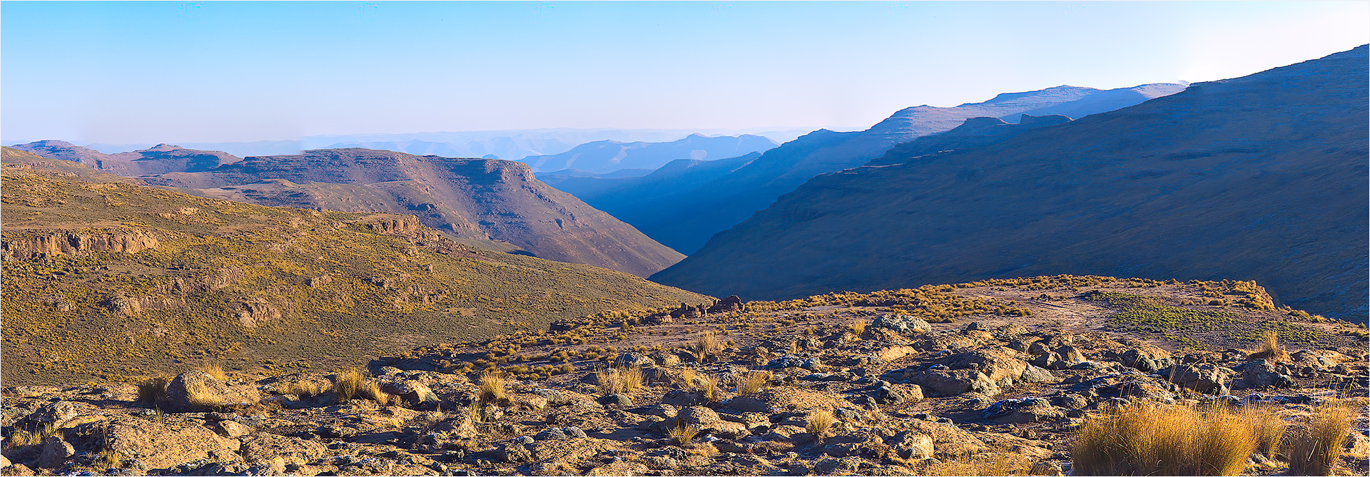 From the top of Sani pass, looking from Lesotho back into KZN province (South Africa). Pano from 3 images and worked on to lessen the harsh shadow with Dan Margulis' heavy hammer treatment and of course our friend CM to finish it off