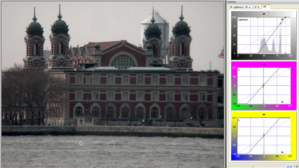 I corrected this image in both RGB and Lab by moving the threshold on both the left and the right. I adjusted a middle point in the RGB and in the Lab correction I used the desaturation slider. What do you think?