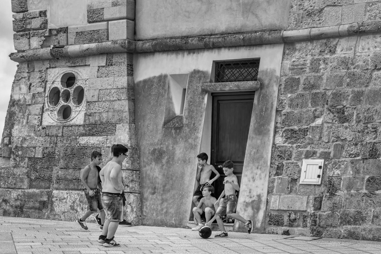 Julie, please correct me if I'm off. I think that by darkening the background a bit(perhaps not the door, but the wall) and lightening the children and their ball a tad would make them stand out more. I like good contrast in monochrome images, so I don't think this is too contrasty